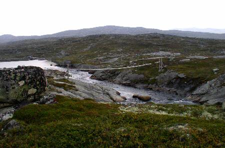 Vlak voordat ik Kjeldebu bereik is er dan weer zo'n leuk hangbruggetje.